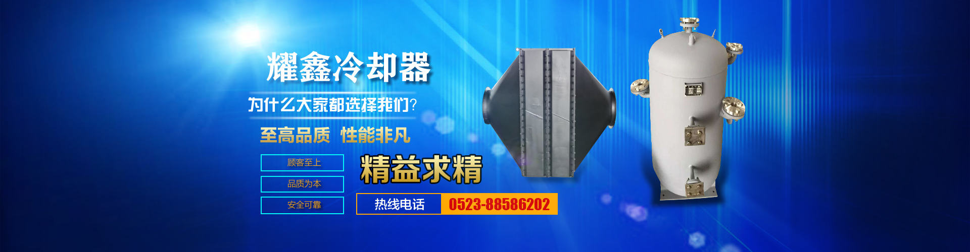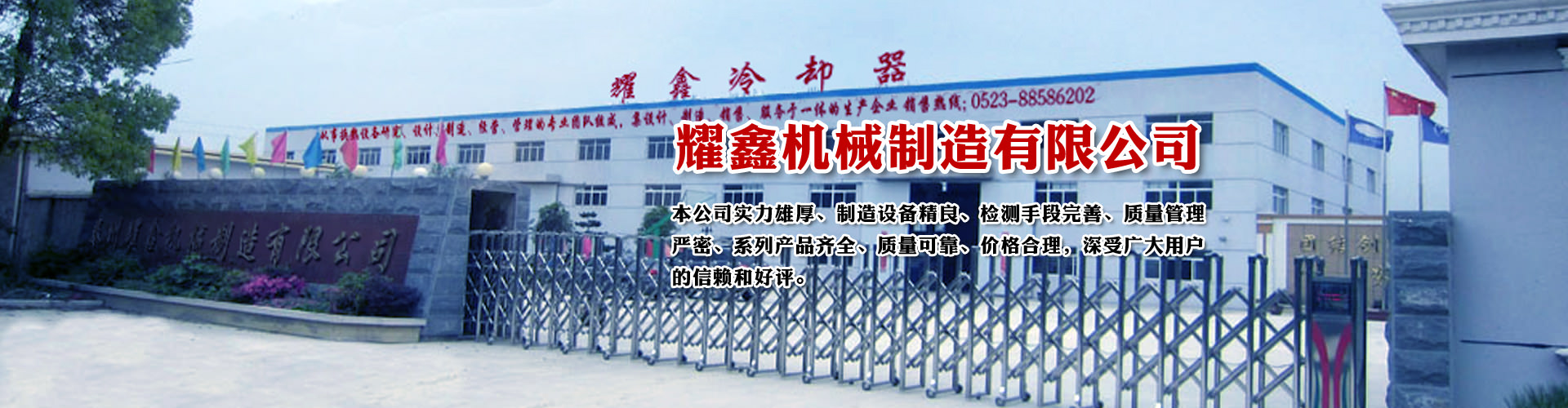 免費咨詢方案 +泰州耀鑫機械制造有限公司座落于風景如畫的江蘇魚米之鄉(xiāng)--全國文明城鎮(zhèn)婁莊鎮(zhèn),是一家專業(yè)生產(chǎn)風冷卻器、列管式冷卻器、板式冷卻器的企業(yè)。本公司實力雄厚、制造設(shè)備精良、檢測手段完善、質(zhì)量管理嚴密、系列產(chǎn)品齊全、質(zhì)量可靠、價格合理,深受廣大用戶的信賴和好評。